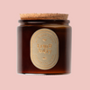 Glass jar, cork top, soy wax, cotton wick, proprietary essential oil blend.