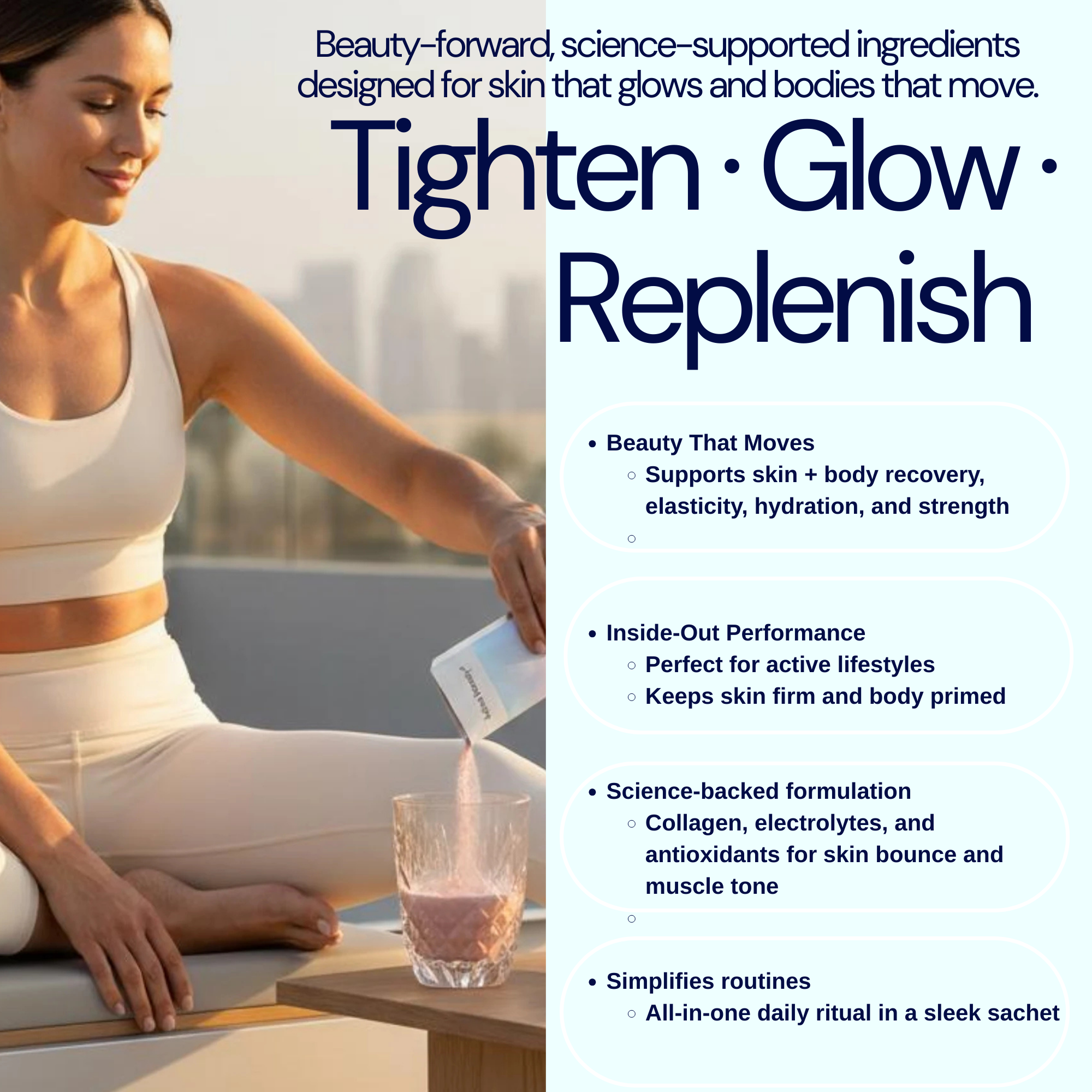 Active Beauty is a modern wellness brand redefining ingestible skincare through performance-driven beauty systems designed for skin that glows and bodies that move. Founded from a sports and integrative medicine perspective, the brand creates intelligent, all-in-one formulas that combine marine collagen, antioxidants, electrolytes, and functional nutrients to support hydration, recovery, resilience, and visible radiance in one elevated daily ritual. Blending science-led formulation with luxury aesthetics, Active Beauty delivers streamlined solutions for active women who want more than a beauty elixir — they want a refined Active + Beauty System that works from within to support confidence, movement, and longevity.