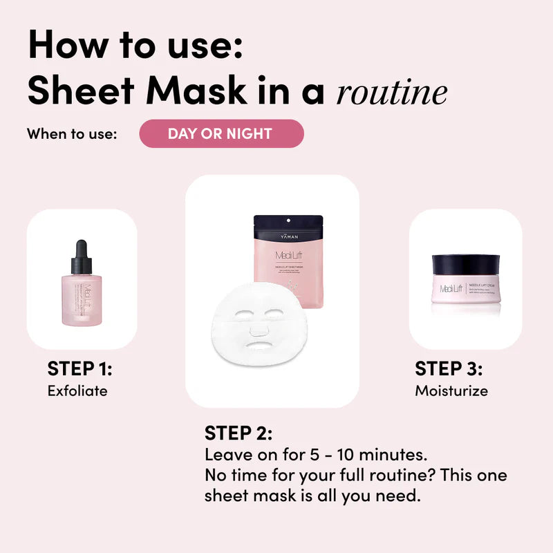 A rejuvenating sheet mask powered by YA-MAN’s Needle Lift Technology, featuring over 600,000 micro-spicules that gently stimulate the skin’s surface for visible renewal. Each mask delivers targeted hydration and firming actives deep within the skin to enhance elasticity and radiance. Inspired by Japanese skincare rituals, it leaves skin smoother, plumper, and glowing with a supple, mochi-like finish.